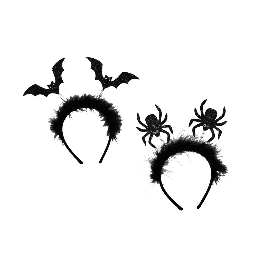 Halloweenská čelenka, která ozvláštní každou pořádnou párty. Na čelence jsou vždy dvě dýně s kočkou, netopýrem, s pavouky nebo kloboučem s pavouky.
