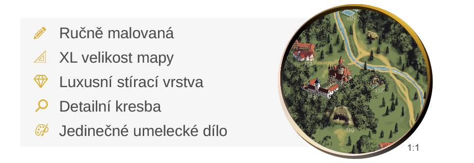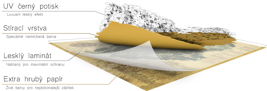 - luxusní povrchová úprava mapy (lamino + stírací fólie zlaté barvy)